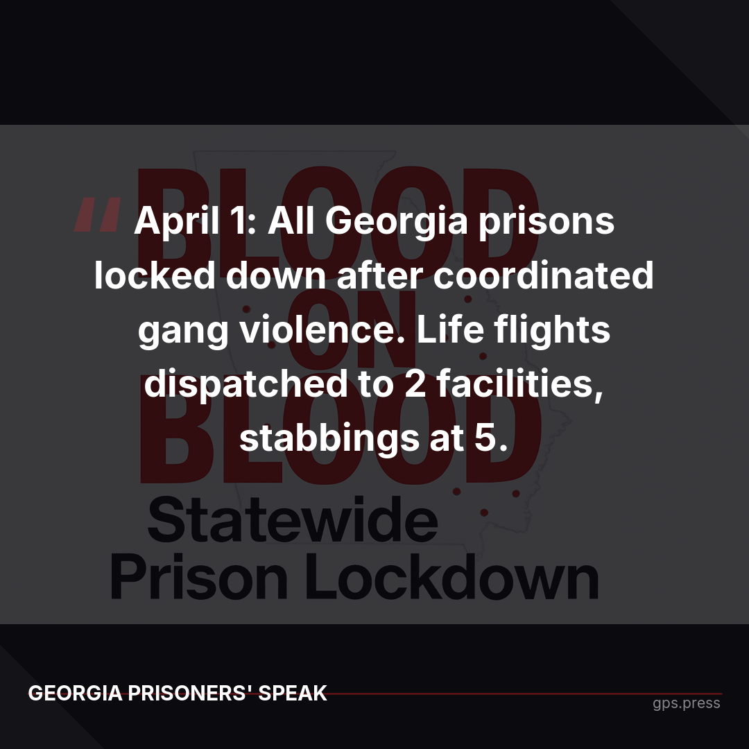 Twelve prisons locked down. Life flights dispatched. Gang leader stabbed in front of the warden. Georgia has 315 gangs, zero separation strategy, and chooses lockdowns over proven solutions that cut violence 50% in other states. Share this now.