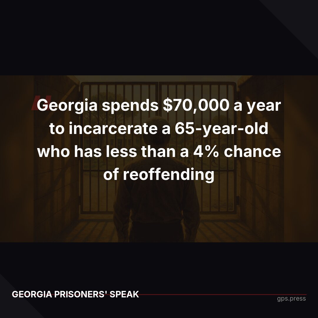 Georgia is spending $70,000 a year on prisoners with a 4% reoffending rate while 5,663 people over 60 sit in cells that cost more than teacher salaries. If you just read about elderly people dying in prison for crimes committed decades ago, the least you can do is share it.