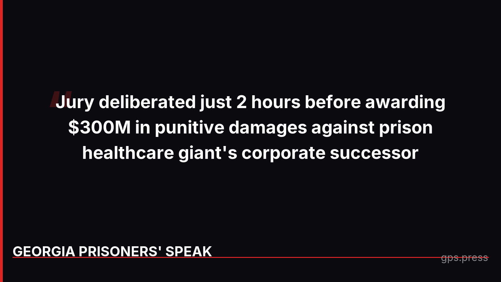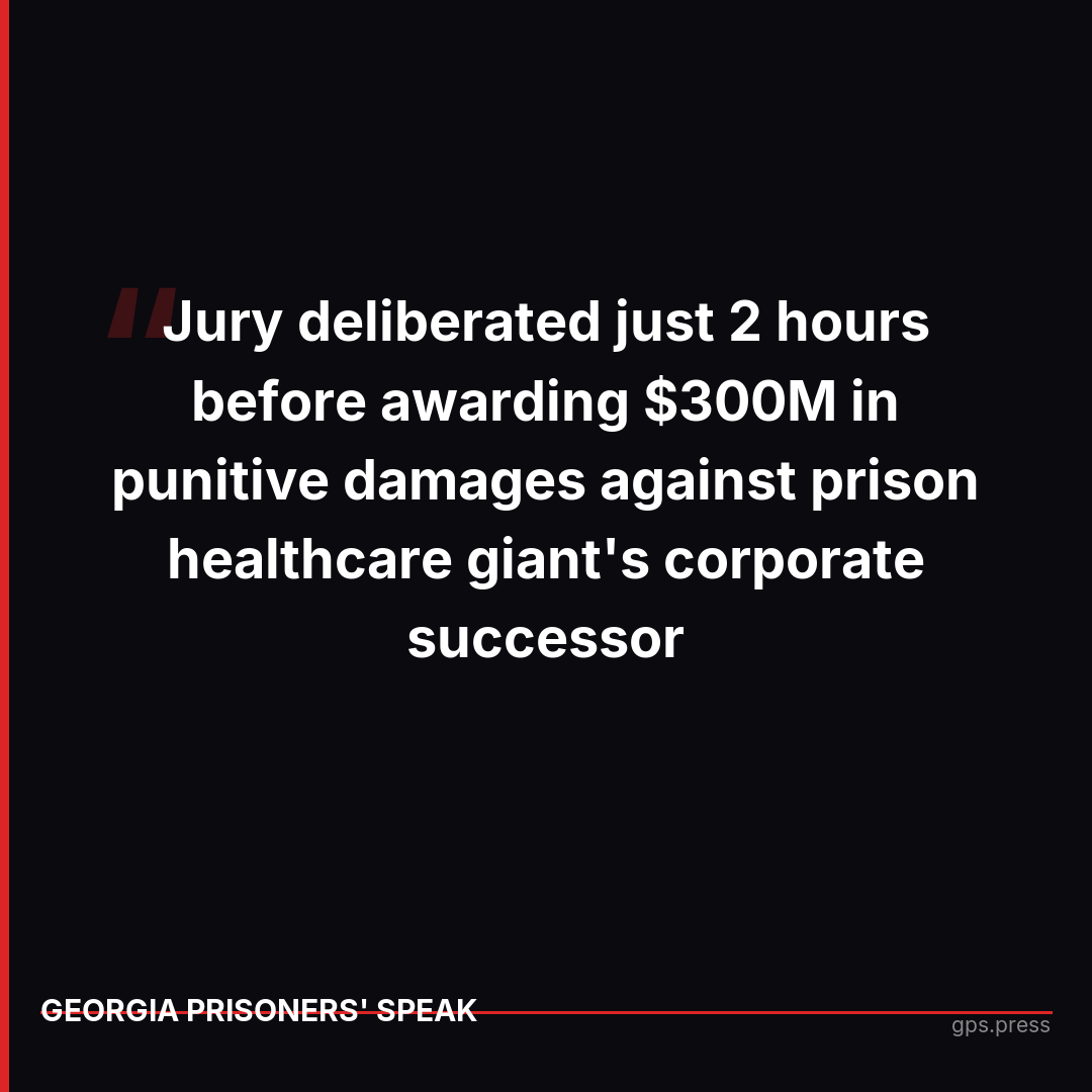 A federal jury in Detroit just awarded $307.6 million against prison healthcare giant Corizon Health after deliberating for only two hours. The case centered on Kohchise Jackson, who spent over two years in Michigan prisons with a leaky colostomy bag because Corizon deemed the reversal surgery too expensive. The company operated in Georgia for years using the same profit-over-care model that this jury found so egregious they awarded $300 million in punitive damages alone. https://gps.press/307-6m-verdict-against-prison-healthcare-giant-corizon/