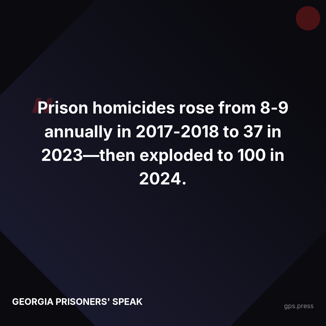 Georgia's prison budget exploded by $700 million in four years. Every measurable outcome got worse. Prison homicides jumped from 8-9 annually to 100 in 2024. Jimmy Trammell died 3 days before release. https://gps.press/700-million-more-and-nothing-to-show-for-it/