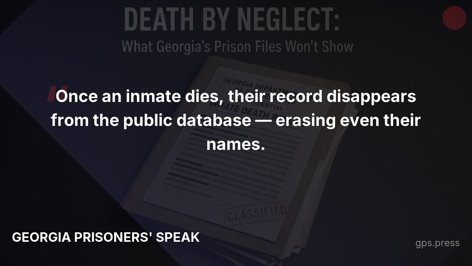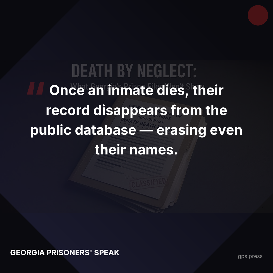 Once an inmate dies, their record disappears from the public database — erasing even their names. Georgia's prisons aren't just failing the living. They're erasing the dead. https://gps.press/death-by-neglect-the-hidden-deaths-inside-georgia-prisons/