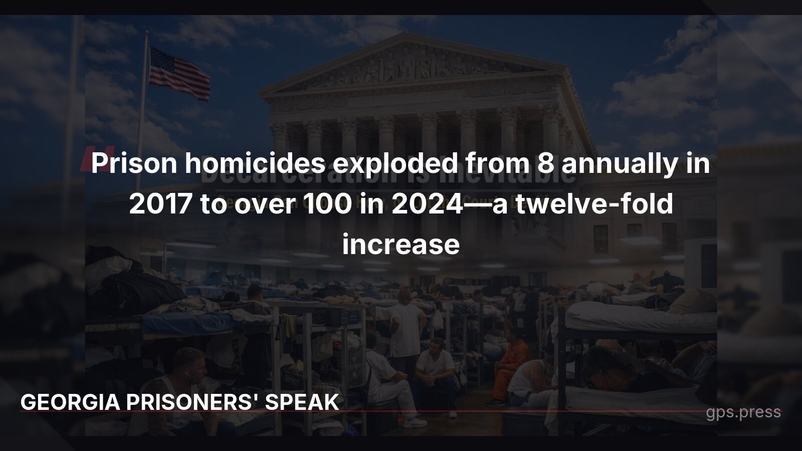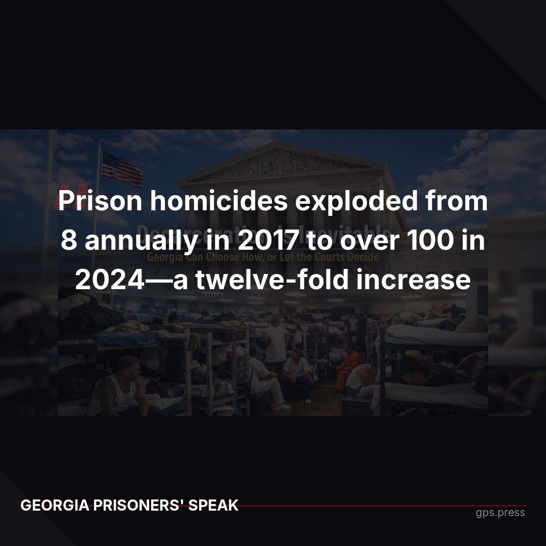 Prison homicides exploded from 8 annually in 2017 to over 100 in 2024—a twelve-fold increase. Georgia added $700 million to its corrections budget, yet outcomes only worsened. The math is clear: incarceration cannot solve this crisis. https://gps.press/decarceratio...