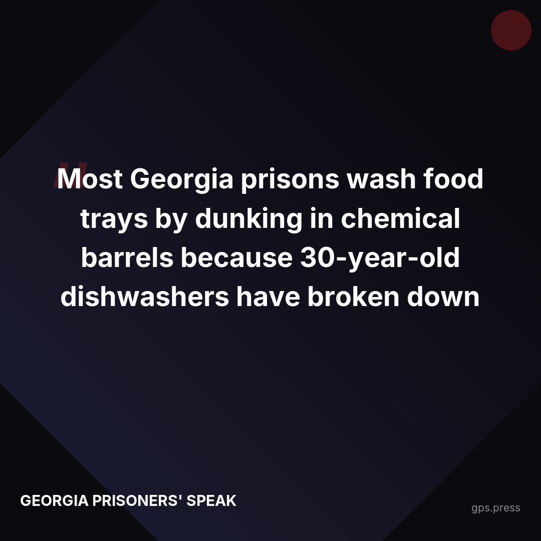 Instead of commercial sanitizing, kitchen workers dunk trays in chemical barrels and stack them wet. Georgia spends $0.60 per meal while the federal government considers $10 per day the bare minimum for adequate nutrition. How is this acceptable in 2025? https://gps.press/dunked-stacked-and-served-why-georgia-prison-trays-are-making-people-sick/
