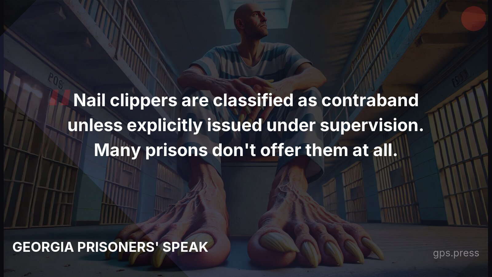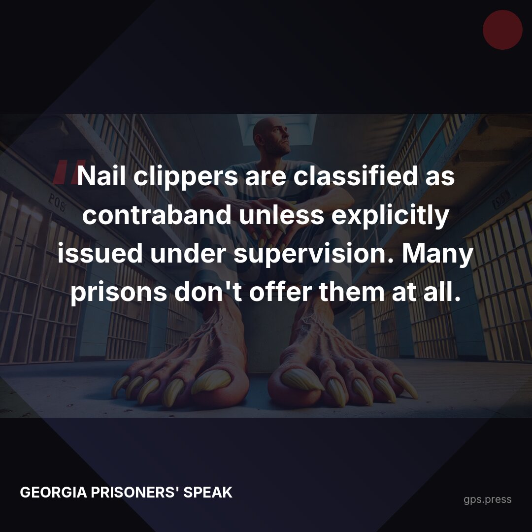 Georgia prisons ban nail clippers, dental floss, and mirrors as 'contraband.' Prisoners are forced to peel their nails, grind them on concrete, or let them grow painfully long. These aren't security risks—they're basic human needs.