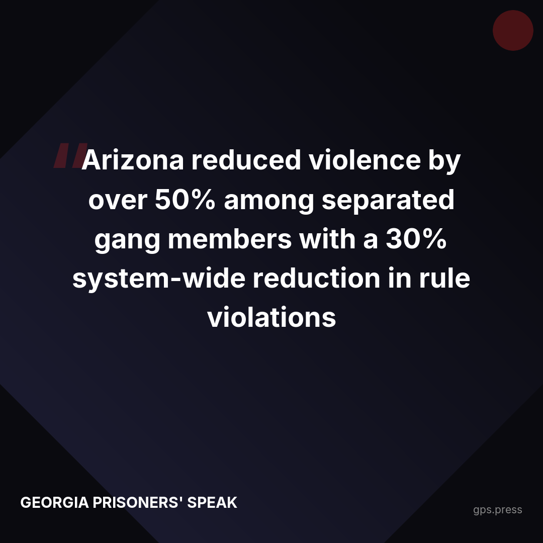 Georgia houses 15,200 validated gang members across 315 gangs without systematic separation protocols. Meanwhile, Arizona implemented gang separation and achieved a 50% reduction in violence among separated members and a 30% system-wide reduction in rule violations. Texas pioneered automatic separation of confirmed gang members with dramatic drops in gang-related homicides. Yet Governor Kemp's $600 million emergency prison investment — the largest in state history — includes no gang management reform.