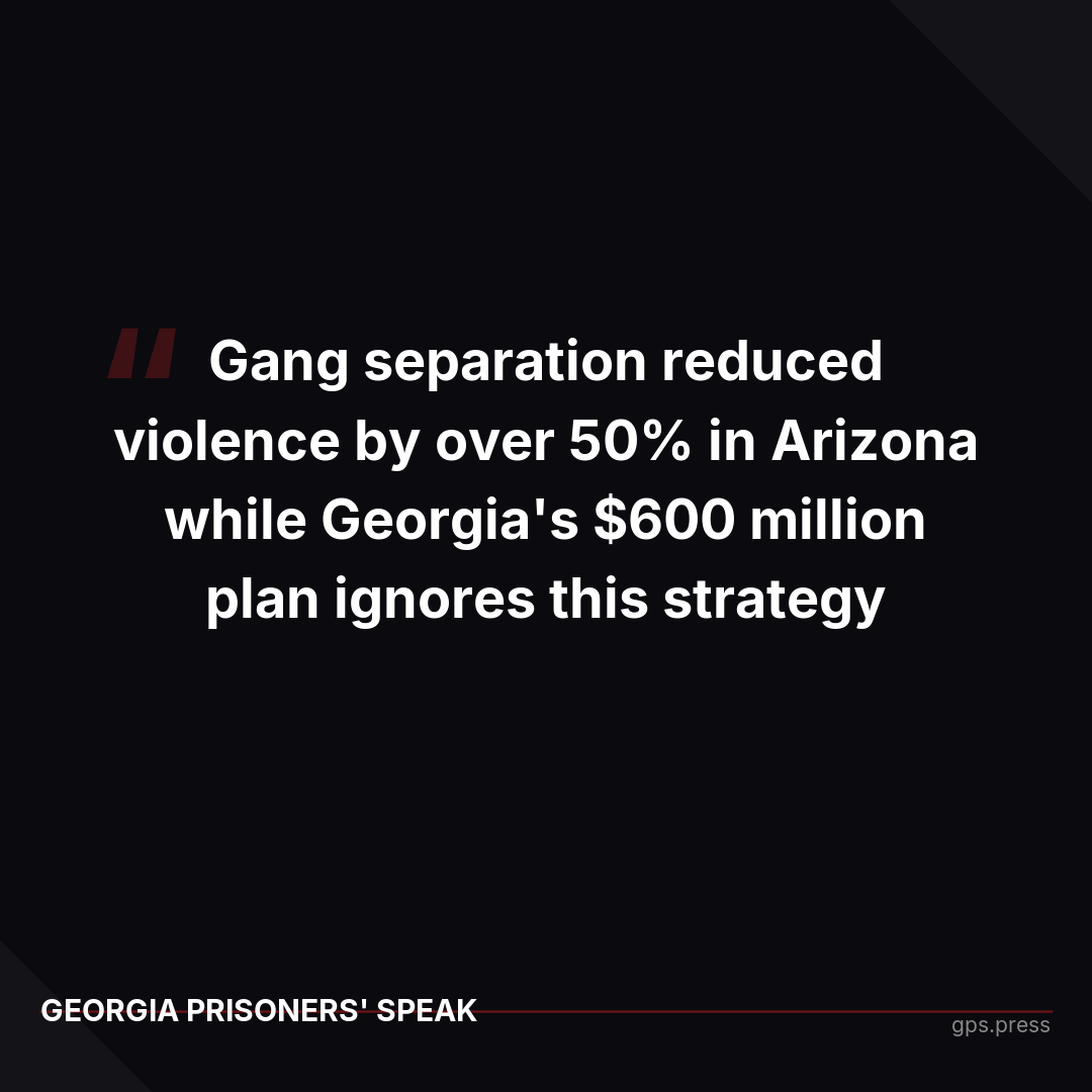 Georgia spent $600M on prisons but refuses gang separation strategies that cut violence 50% in other states. Meanwhile, 31% of Georgia's prisoners are gang members — double the national average. https://gps.press/media/georgia-prison-gang-separation-crisis-press-br...