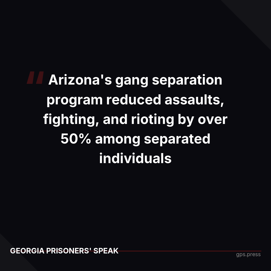 Evidence-based solutions exist. Arizona's rigorously evaluated gang separation program reduced assaults, fighting, and rioting by over 50% and achieved a 30% system-wide reduction in rule violations. Texas and California have implemented successful models. Yet Governor Kemp's $600 million emergency spending proposal explicitly omits gang management reform, focusing instead on infrastructure while ignoring operational strategies that other states proved reduce violence and save lives. https://gps.press/legislator/georgia-prison-gang-separation-policy-brief/