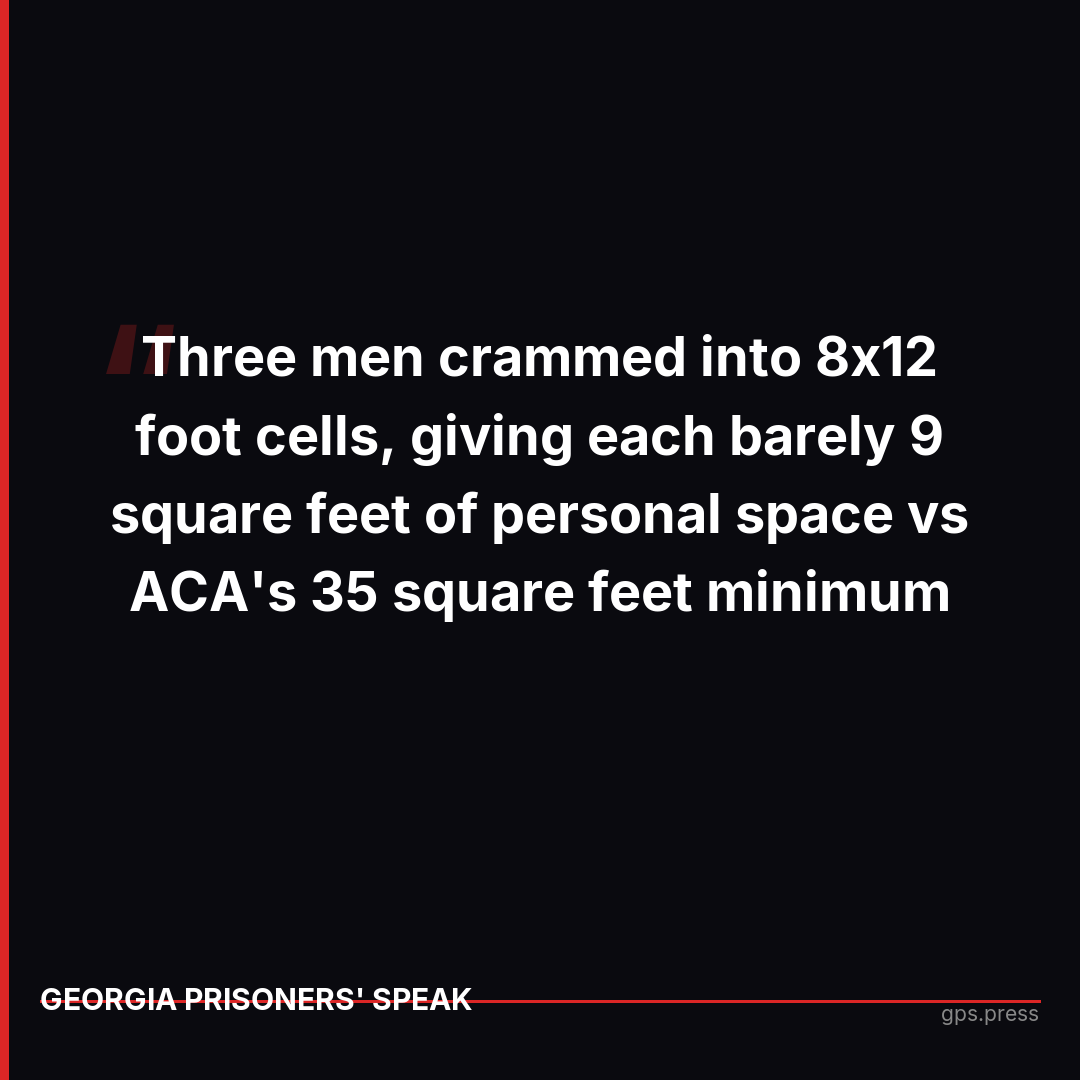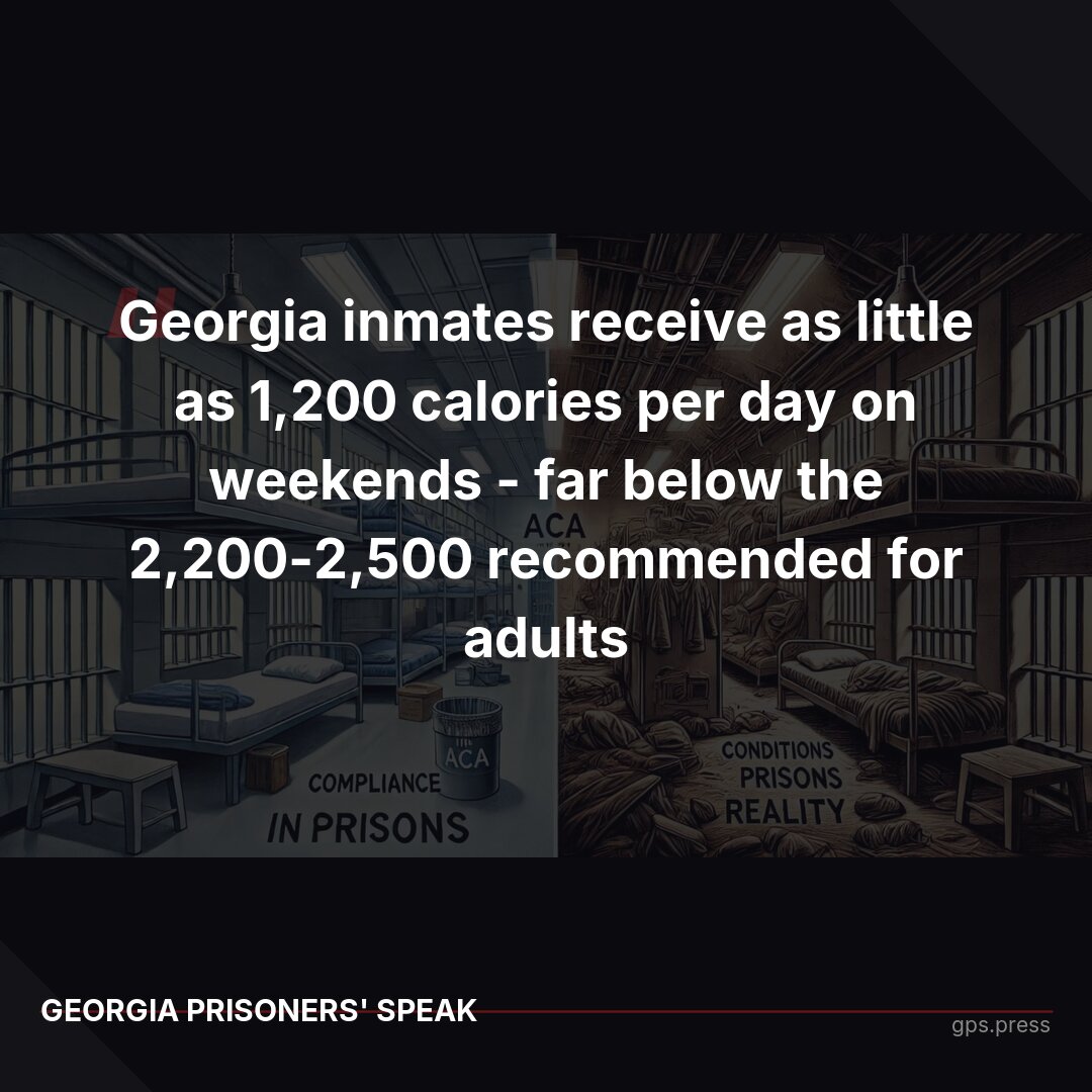 Georgia inmates get 1,200 calories/day on weekends - half what adults need. Three men crammed in cells designed for one. 330 died in 2024. This is ACA 'compliance.' https://gps.press/georgia-prisons-aca-compliance-vs-inhumane-reality/