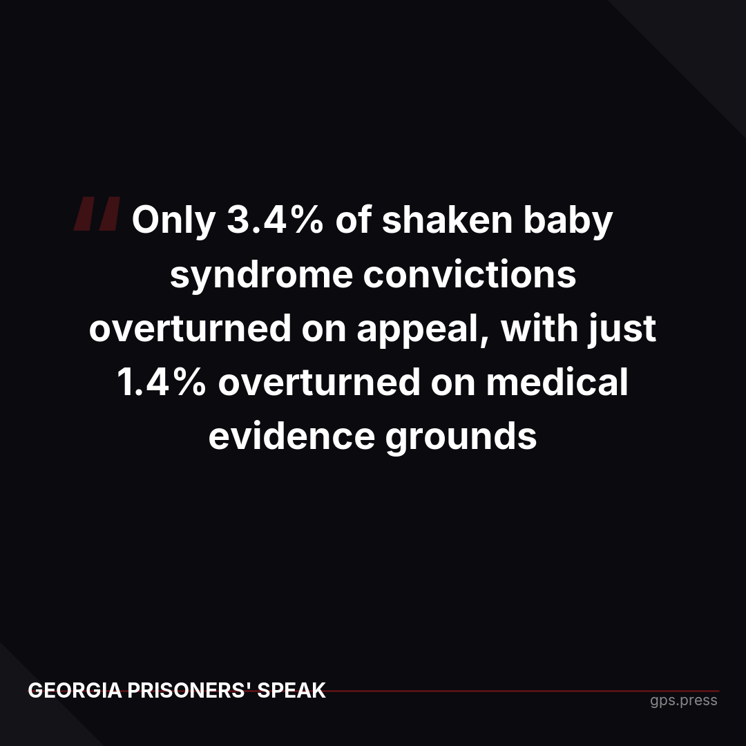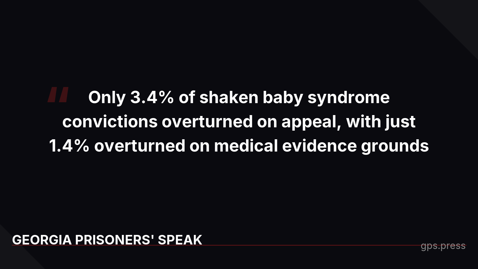 Yet success remains difficult—only 3.4% of shaken baby syndrome convictions are overturned on appeal. Georgia provides no systematic review of potentially affected cases, leaving thousands of prisoners to navigate this complex process alone. How many innocent people remain imprisoned on outdated science? https://gps.press/georgia-supreme-court-opens-door-for-prisoners-to-challenge-convictions-based-on-outdated-science/