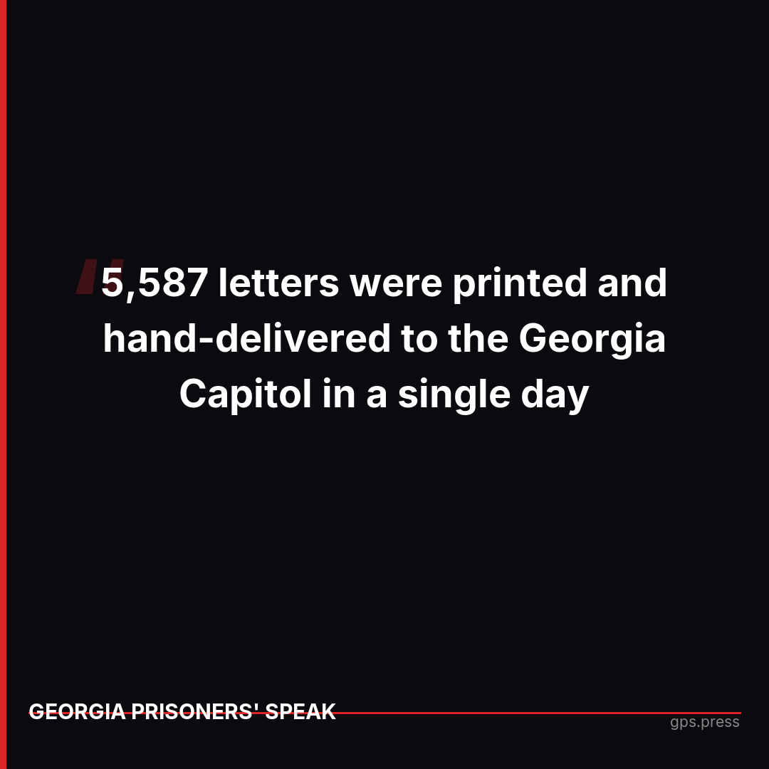 In six months, over 1,300 people used Impact Justice AI to send 15,000+ emails to Georgia officials about prison conditions, parole injustice, and abuse. The platform gives families and advocates real power to reach legislators, parole board members, and journalists with personalized messages. One day in March, 5,587 letters were hand-delivered to the Georgia Capitol. It's not a petition—it's a direct line to the people who hold power in Georgia's criminal justice system. https://gps.press/impact-justice-ai/