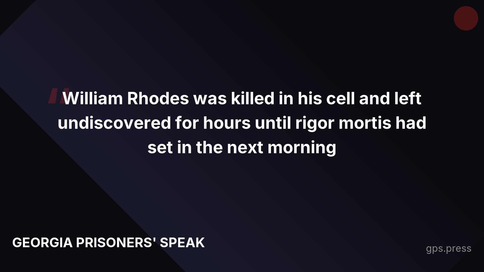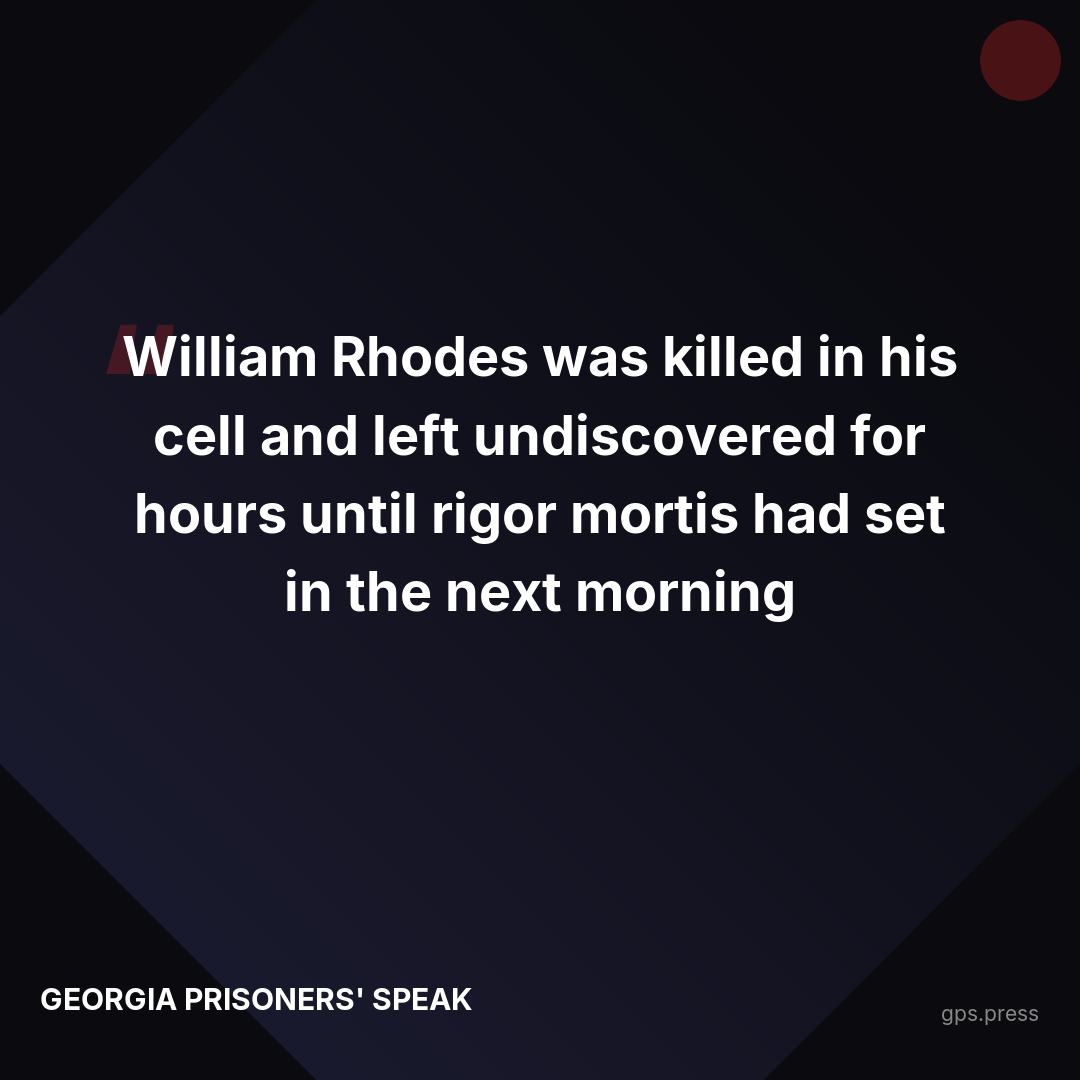 Georgia houses 15,000 gang members who prey on non-affiliated inmates with staff complicity. William Rhodes died in his cell and wasn't found for hours. This is deliberate indifference. https://gps.press/invisible-scars-cycle-of-retaliation-and-abuse-in-georgia-prisons/