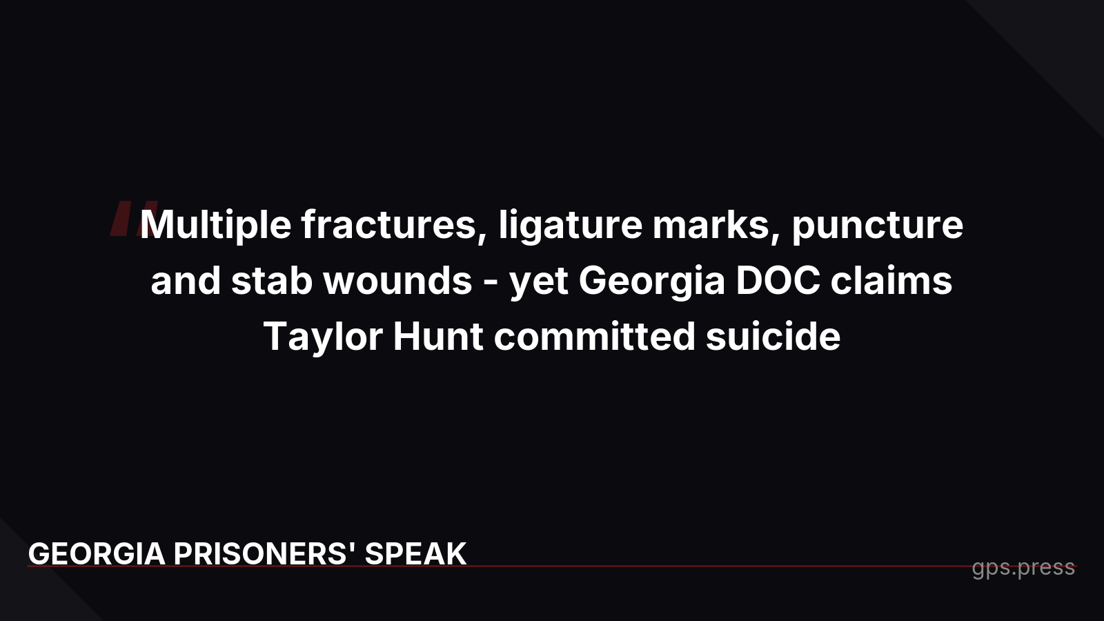 Taylor Hunt died at Rogers State Prison with multiple fractures, ligature marks, puncture and stab wounds - yet Georgia DOC claims he committed suicide. His mother has been denied his autopsy report for months. Georgia had 330 prison deaths in 2024 with 100 homicides, yet the DOJ found officials routinely obstruct investigations and misclassify murders as suicides. Families deserve answers. https://gps.press/lethal-negligence-the-hidden-death-toll-in-georgias-prisons/
