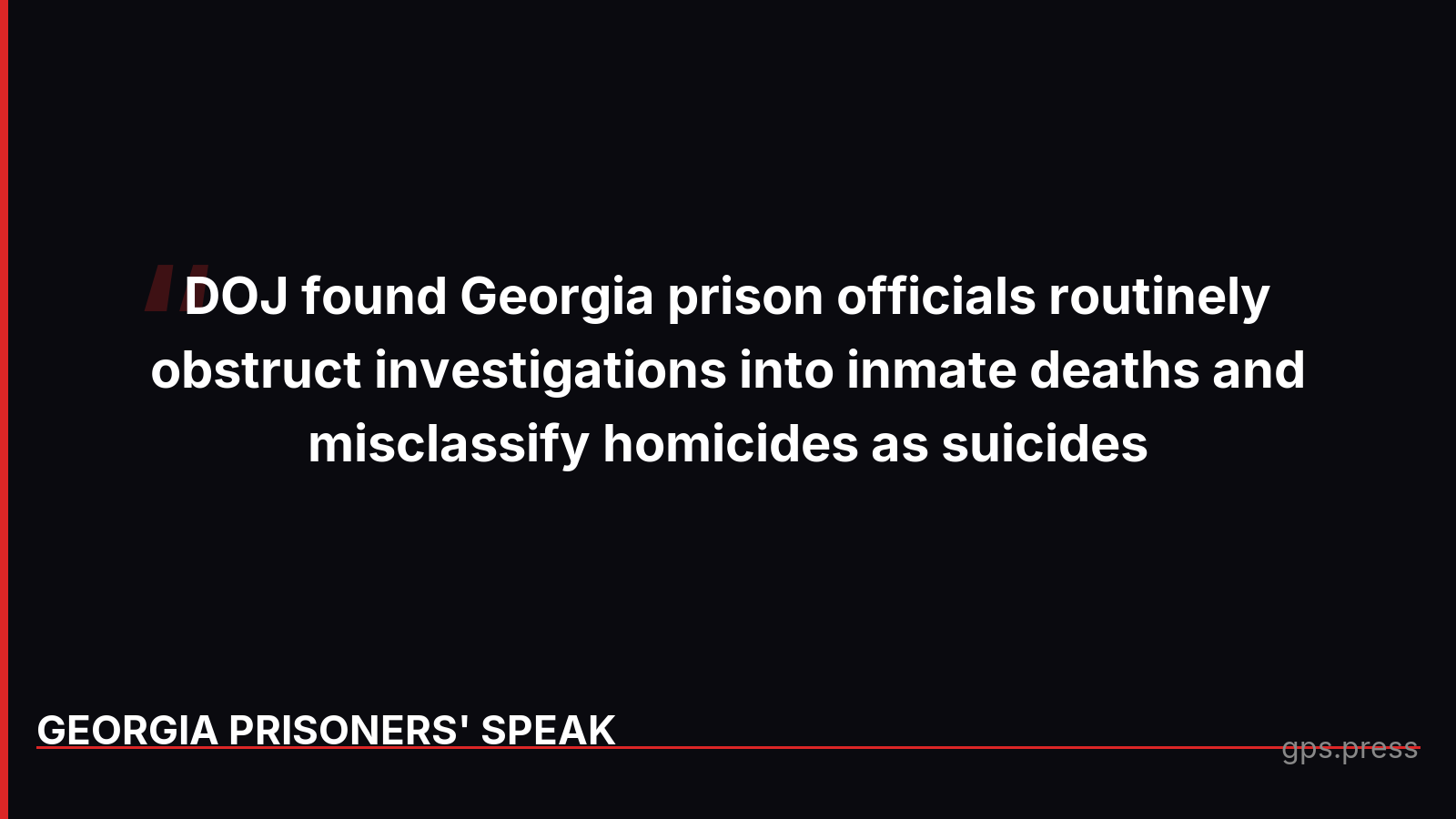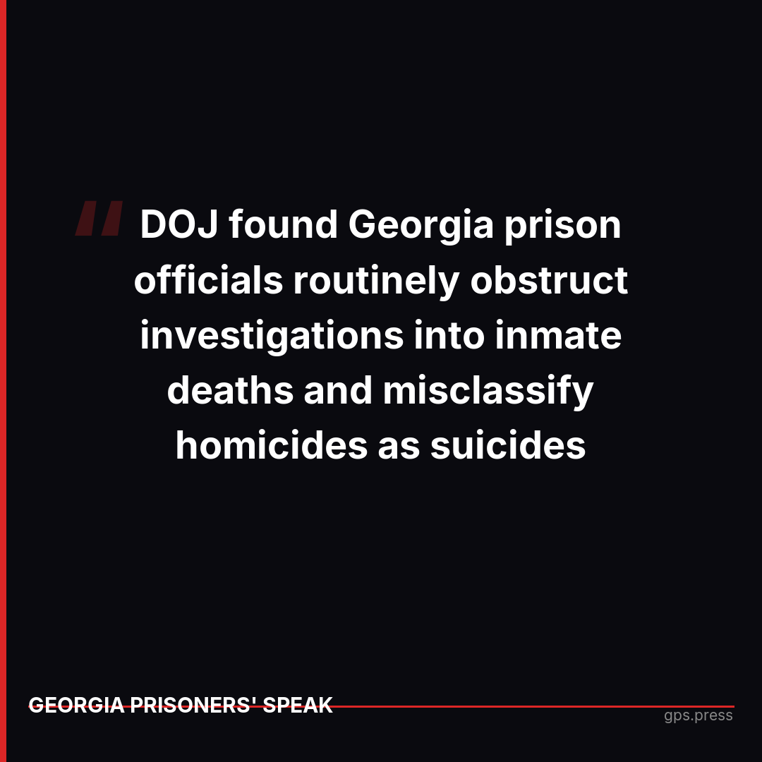 Georgia had 330 prison deaths in 2024 - 100 were homicides, yet many are misreported or concealed from public scrutiny. The DOJ found officials routinely obstruct investigations and misclassify homicides as suicides. https://gps.press/lethal-negligence-the-hidden-dea...