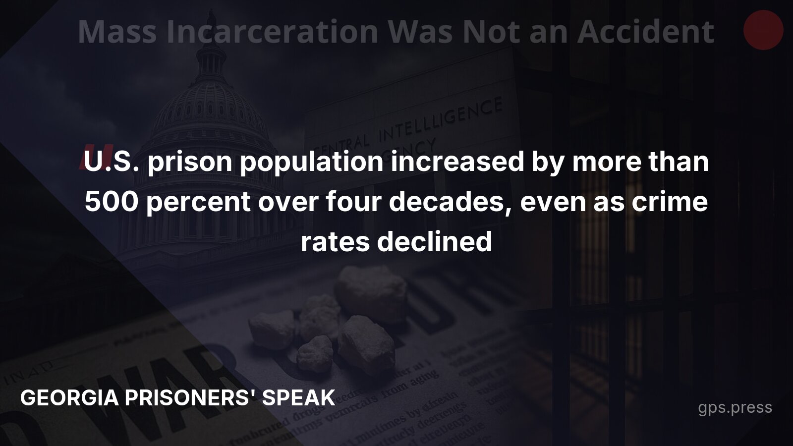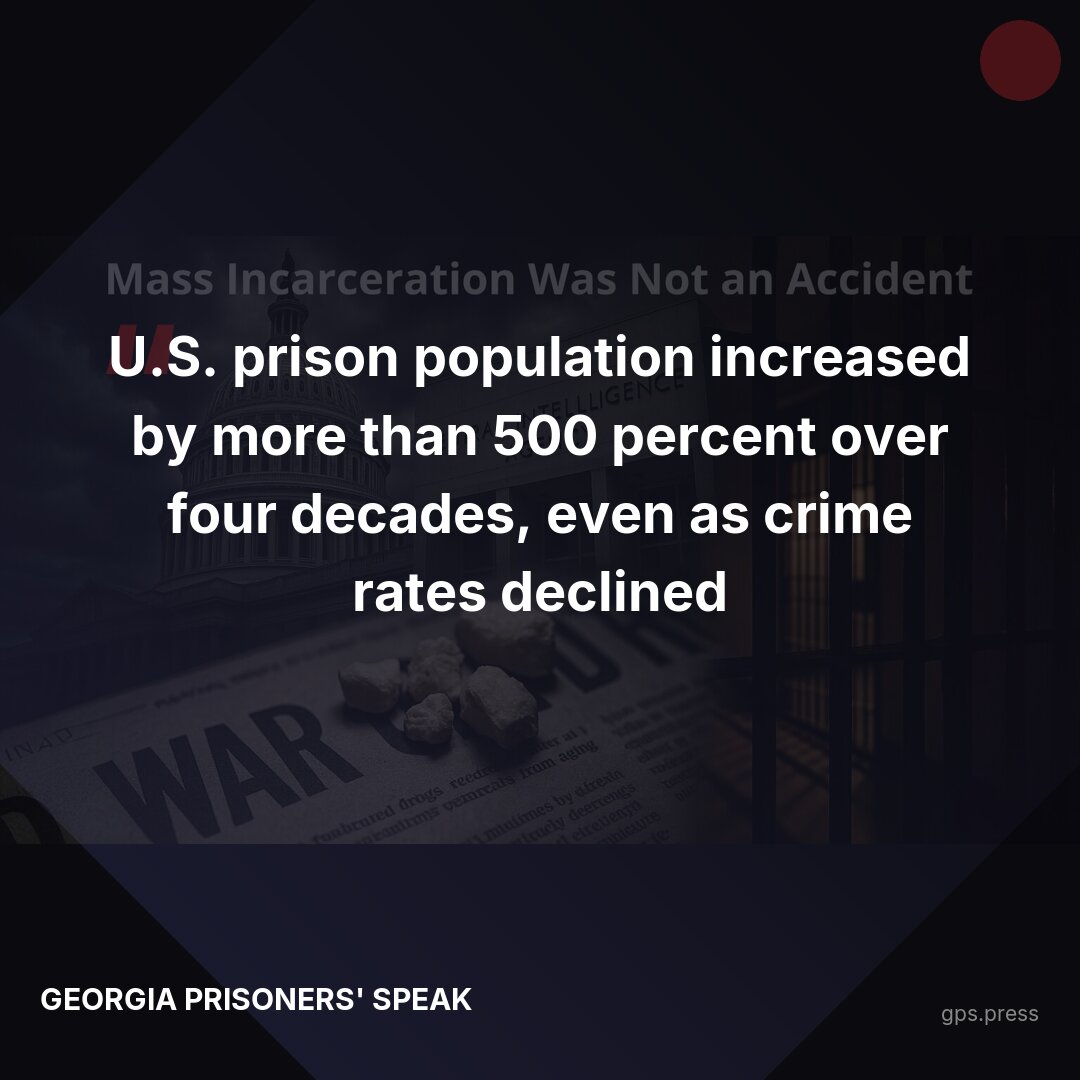 The numbers tell the real story: U.S. prison populations exploded by more than 500% over four decades while crime rates declined. This wasn't a response to danger—it was a political project. The War on Drugs criminalized addiction, created the 100-to-1 crack-powder cocaine sentencing disparity, and concentrated enforcement in communities of color. Meanwhile, the same government tolerated drug trafficking by foreign allies. Georgia adopted these failed policies and doubled down, even after evidence proved they don't work. https://gps.press/mass-incarceration-was-not-an-accident/