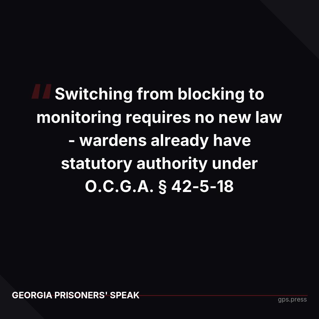 The case highlights a fundamental policy question: Georgia's existing MAS infrastructure can already distinguish between authorized and unauthorized devices - it does this daily for corrections staff phones. The same hardware could register inmate phones for AI monitoring rather than blocking all devices. This isn't a technology gap; it's a policy choice between intelligence gathering and communication suppression in correctional facilities.