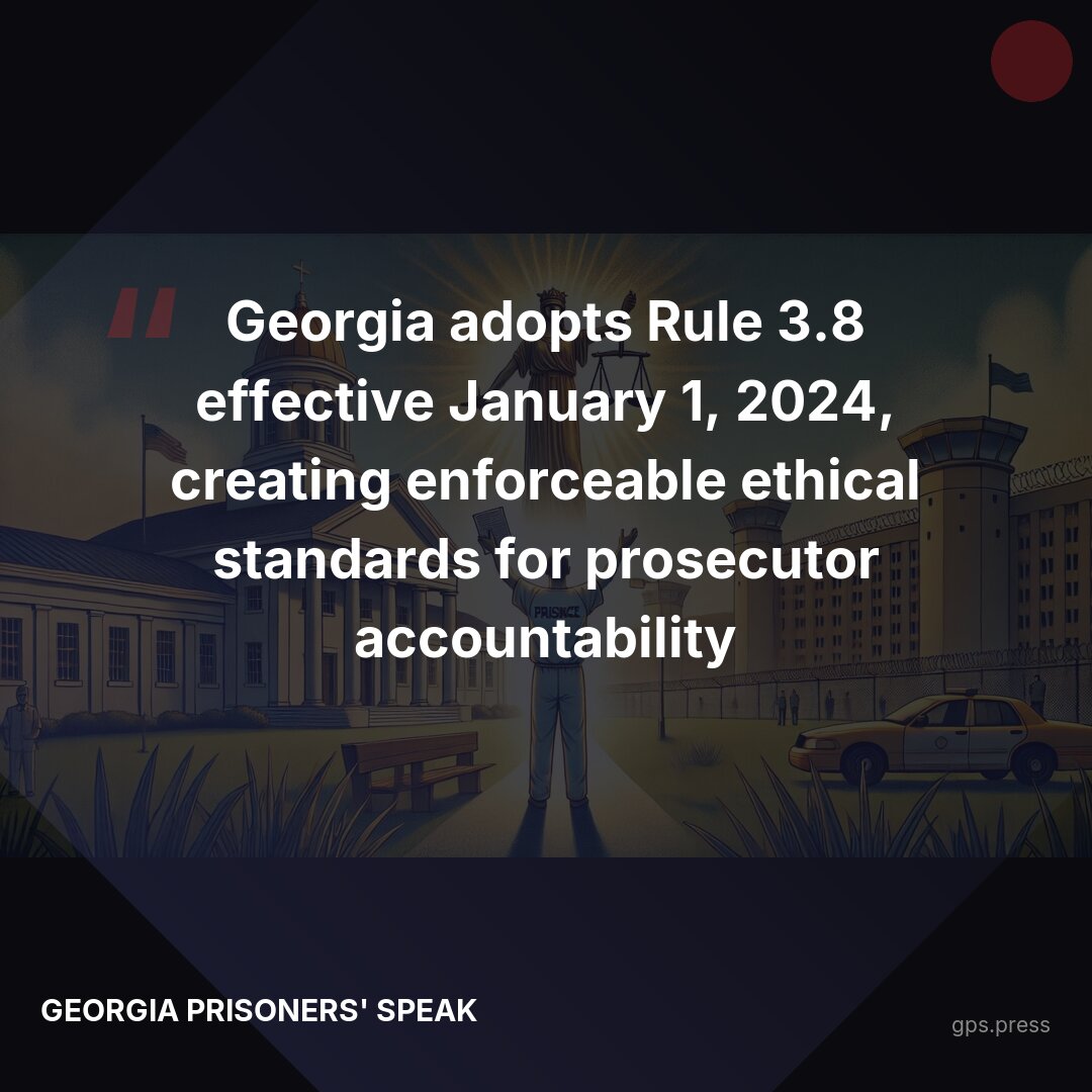 Georgia's adoption of Rule 3.8 represents a significant policy shift in prosecutorial accountability. The rule, effective January 1, 2024, establishes enforceable ethical standards requiring prosecutors to investigate credible evidence of innocence and take remedial action when wrongful convictions are identified. This creates new post-conviction pathways for incarcerated individuals and establishes clear disciplinary consequences for prosecutors who fail to meet these obligations. The reform aligns Georgia with national standards and provides a framework for addressing prosecutorial misconduct through State Bar enforcement mechanisms. https://gps.press/rule-3-8-comes-to-georgia-a-new-tool-for-prisoner-justice/