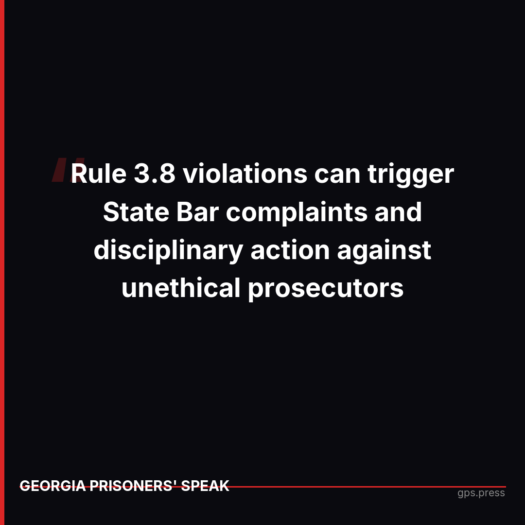 Georgia's Rule 3.8, effective January 1, 2024, creates enforceable ethical standards requiring prosecutors to investigate credible evidence of innocence and remedy wrongful convictions. When prosecutors ignore new evidence or fail to disclose information that could exonerate defendants, they now face potential State Bar discipline and public accountability. This gives prisoners and advocates new tools to demand justice from the officials charged with seeking it.