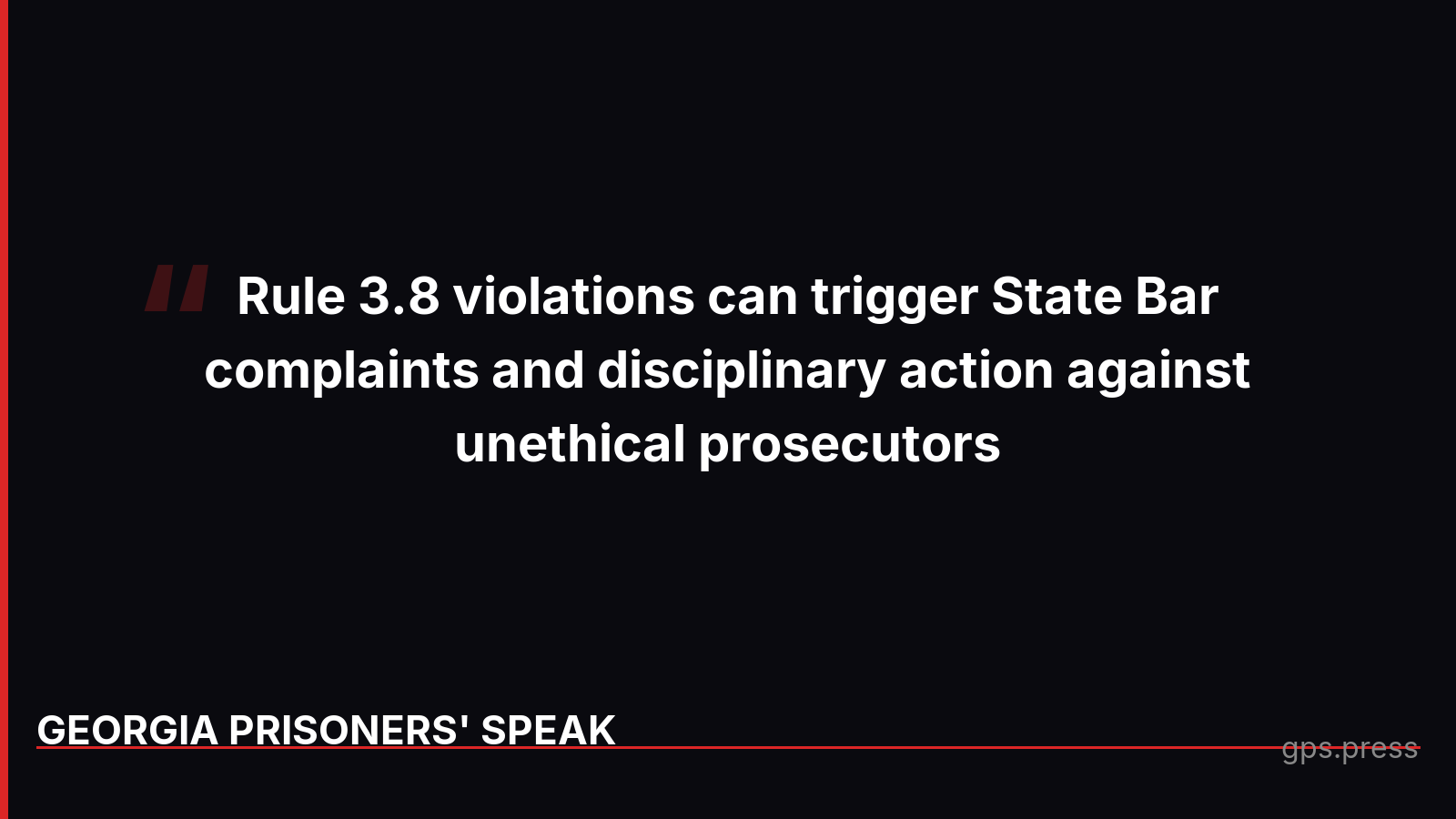 Georgia's new Rule 3.8 requires prosecutors to investigate credible evidence of innocence and remedy wrongful convictions. Violations can trigger State Bar discipline. https://gps.press/rule-3-8-comes-to-georgia-a-new-tool-for-prisoner-justice/