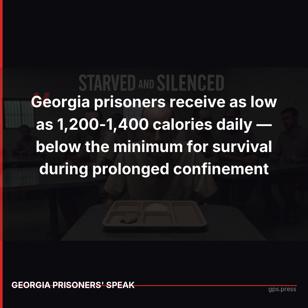 Georgia prisoners receive as low as 1,200-1,400 calories daily — below the minimum for survival during prolonged confinement. The state spends $1.77-$2.20 per day on food while adequate nutrition could save millions. https://gps.press/starved-and-silenced-the-hidde...