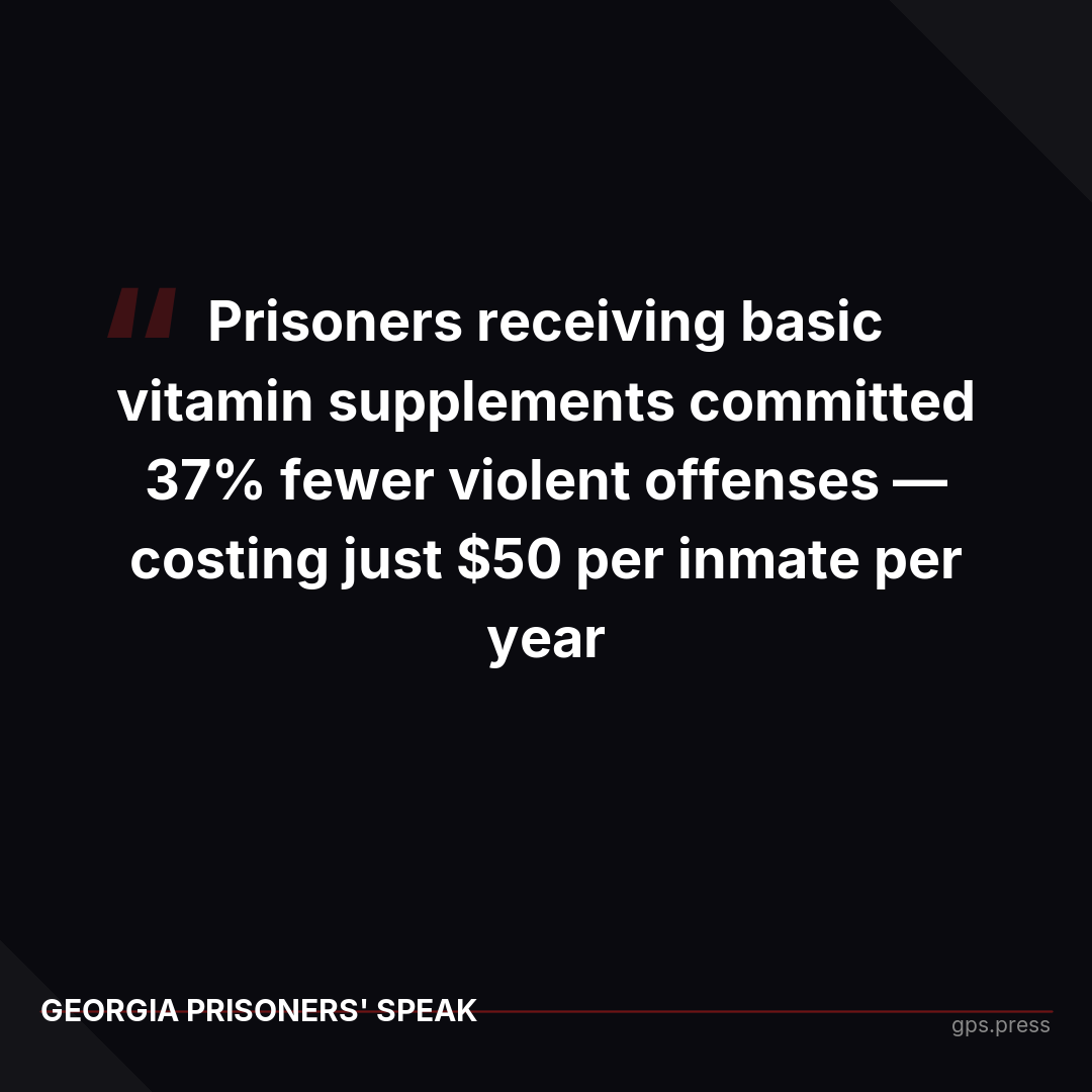 Research proves that basic nutritional interventions reduce violent incidents by 37% at a cost of $50 per person annually. Yet Georgia continues policies that prioritize short-term budget savings over constitutional compliance, public safety, and fiscal responsibility. https://gps.press/starved-and-silenced-the-hidden-crisis-inside-georgia-prisons/