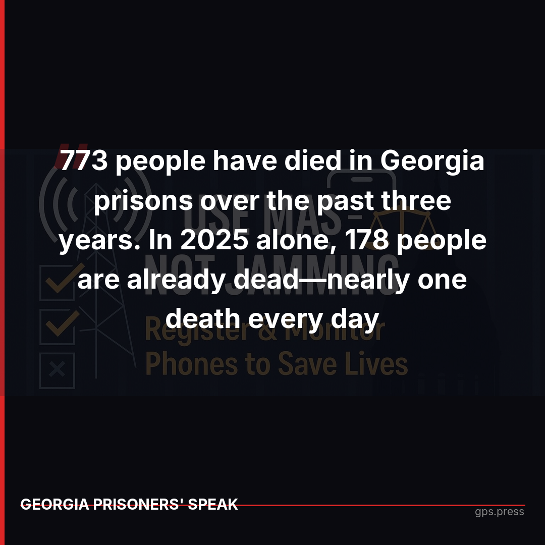 773 people dead in Georgia prisons over 3 years. 178 already dead in 2025—nearly one death every day. The state has the technology to monitor all 20,000 illegal phones but chooses deadly prohibition over AI-supervised communication. https://gps.press/stop-the-silen...