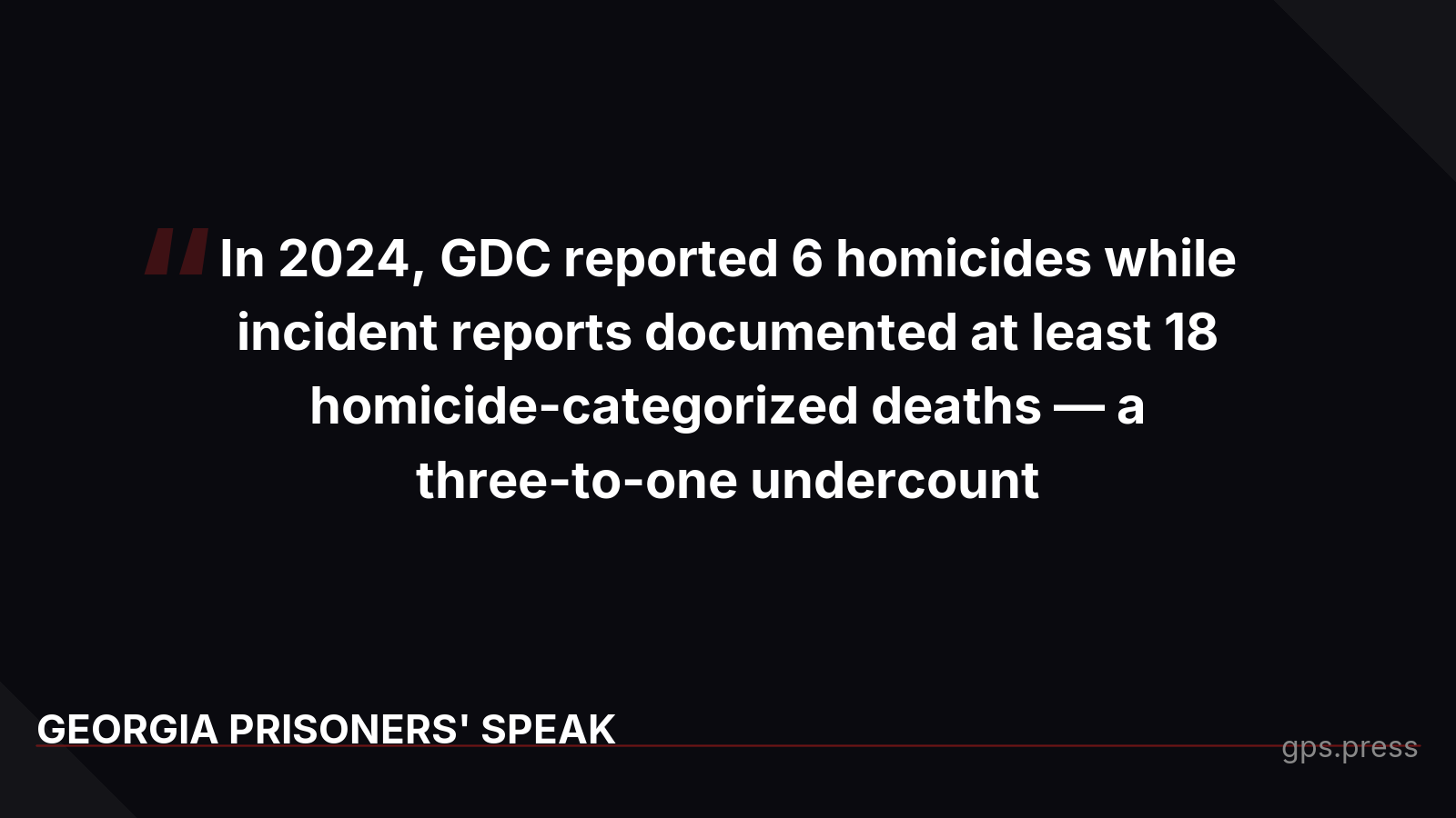 Georgia's Department of Corrections counted 301 prison deaths in 2025 but will only publicly name 295. When GPS asked for the six missing identities, GDC claimed these people died while serving state sentences but somehow weren't "in custody" — then demanded we pay them by the hour to explain their own contradictory records. This follows a pattern: GDC has misclassified homicides as natural deaths, undercounted overdoses, and hidden the true scale of mortality. Six families deserve to know their loved ones haven't been forgotten. https://gps.press/the-six-who-disappeared-georgias-prison-death-cover-up/