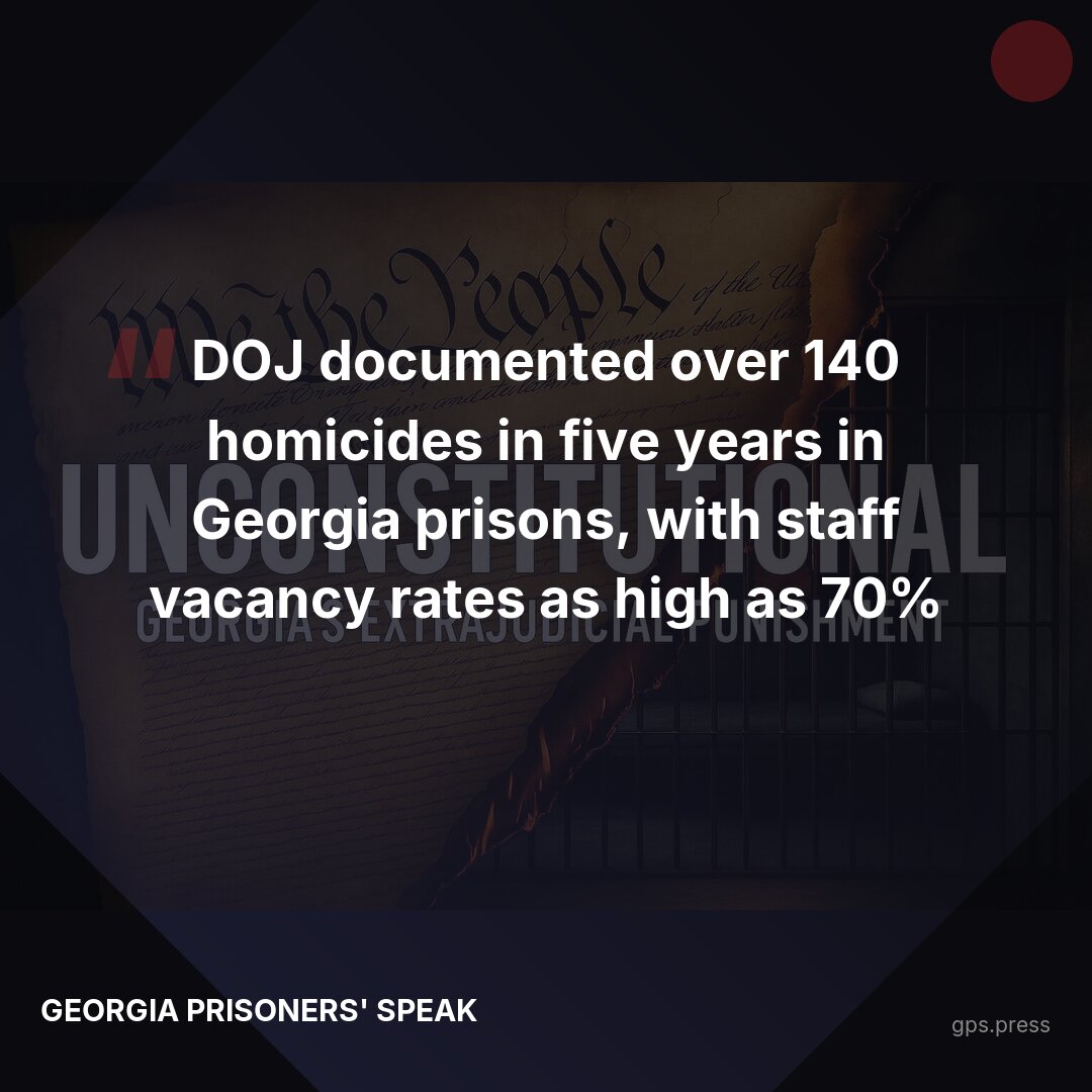Georgia's prison system has recorded over 140 homicides in five years, with some facilities experiencing 70% staff vacancy rates. When the DOJ confirms systematic constitutional violations, when people are sentenced to trauma rather than time, we must recognize this truth: the sentence imposed is not the sentence being served. This isn't incarceration—it's abandonment to chaos. https://gps.press/unconstitutional-georgias-extrajudicial-punishment/