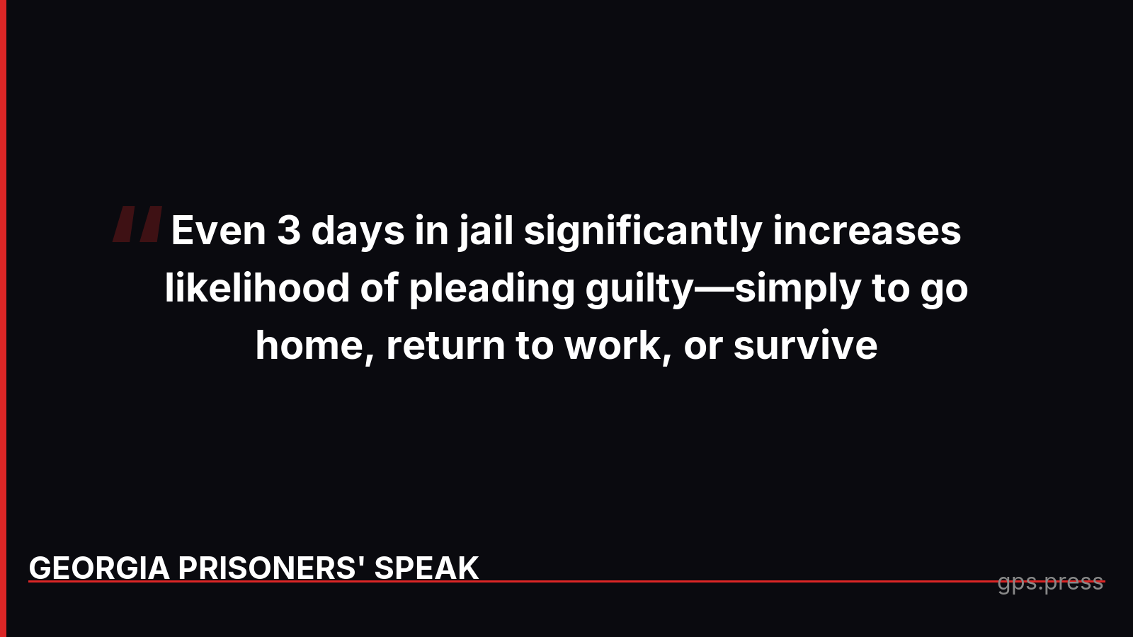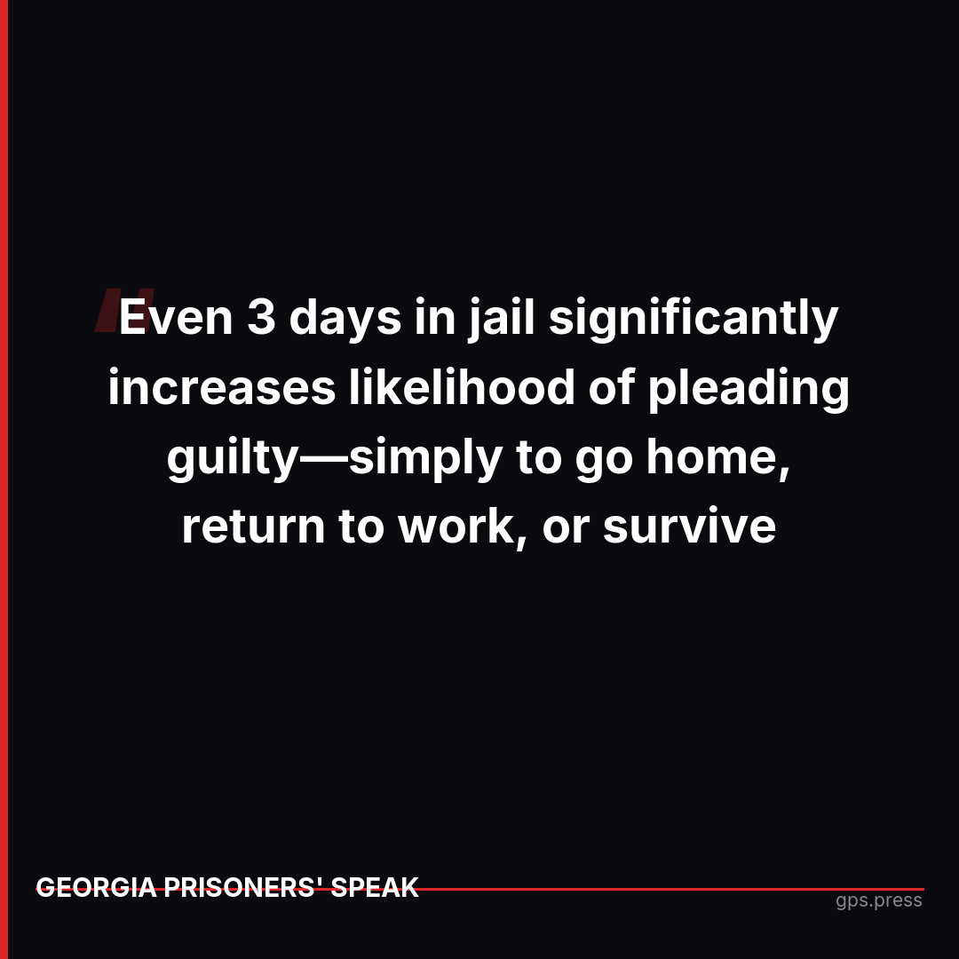 The mechanics are clear: dangerous county jails under federal investigation, bonds set beyond defendants' means, and prosecutorial overcharging that creates trial penalties exceeding 500%. When three days in jail significantly increases plea likelihood regardless of guilt, we must acknowledge that voluntary pleas have become a legal fiction. This system prioritizes efficiency over truth, and Georgia's policies make it worse than most states. https://gps.press/when-innocence-isnt-enough-how-georgias-system-turns-pretrial-detention-into-a-machine-for-guilty-pleas/
