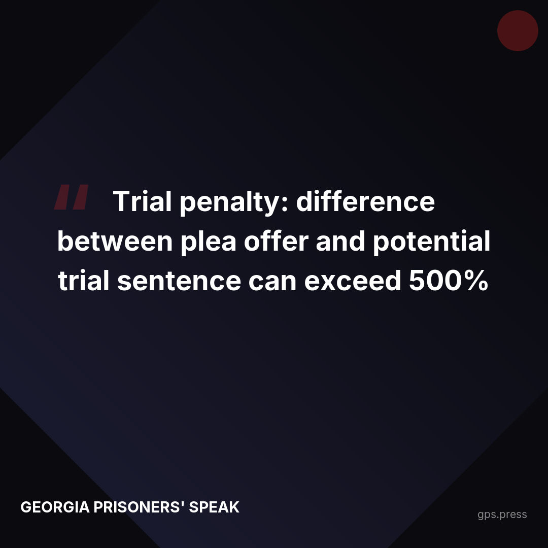 Georgia's deadly jails, unaffordable bonds, and prosecutorial overcharging create a system where pleading guilty becomes the only way to survive, even for the innocent. When the trial penalty can exceed 500%—meaning you face decades more prison time for demanding your constitutional right to trial—is this really justice? https://gps.press/when-innocence-isnt-enough-how-georgias-system-turns-pretrial-detention-into-a-machine-for-guilty-pleas/