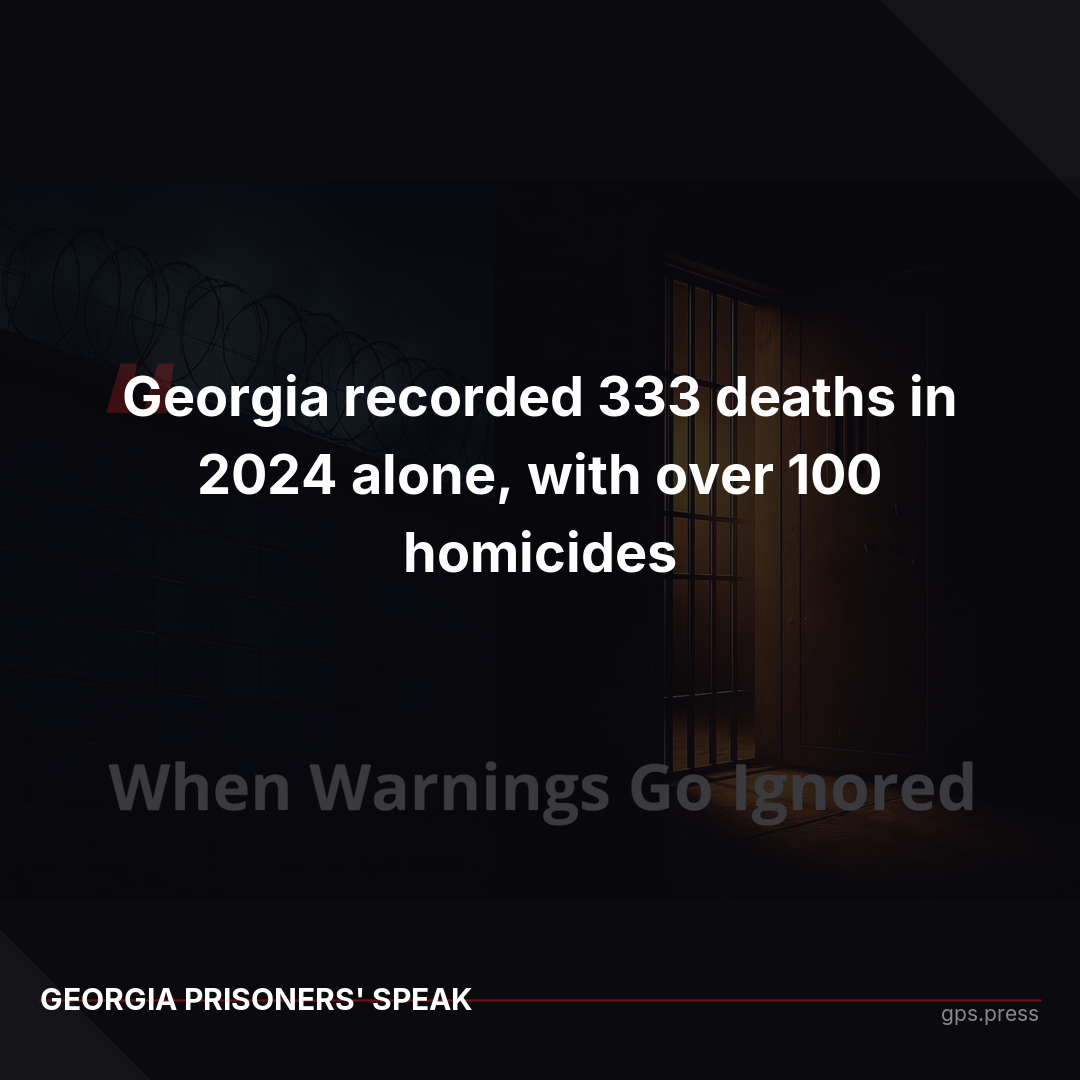 Georgia recorded 333 deaths in 2024 alone, with over 100 homicides. The DOJ found the state is 'deliberately indifferent' to lethal violence. Yet Georgia spends $1.6B on new construction instead of proven reforms. https://gps.press/when-warnings-go-ignored/