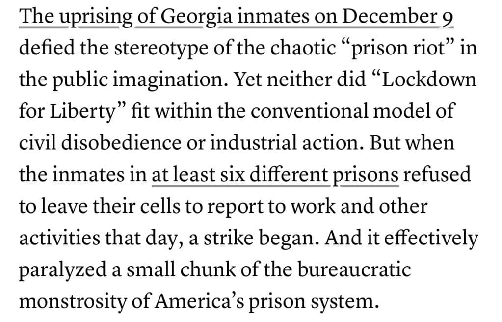 16. In These Times – Georgia Prison Strike: A Hidden Labor Force Resists: https://inthesetimes.com/article/georgia-prison-strike-a-hidden-labor-force-resists[]